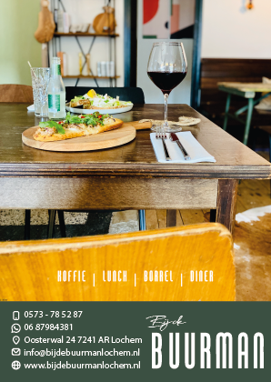 Bij de buurman bestaat het diner uit wat de pot schaft. Dat wil zeggen: er is geen menu kaart, maar elke avond één heerlijk gerecht. Er is ook altijd een vegetarische optie. Weten wat de pot schaft? KIjk op Instagram Bij de buurman, maar je kan ook Whatsappen 06 87 98 43 81